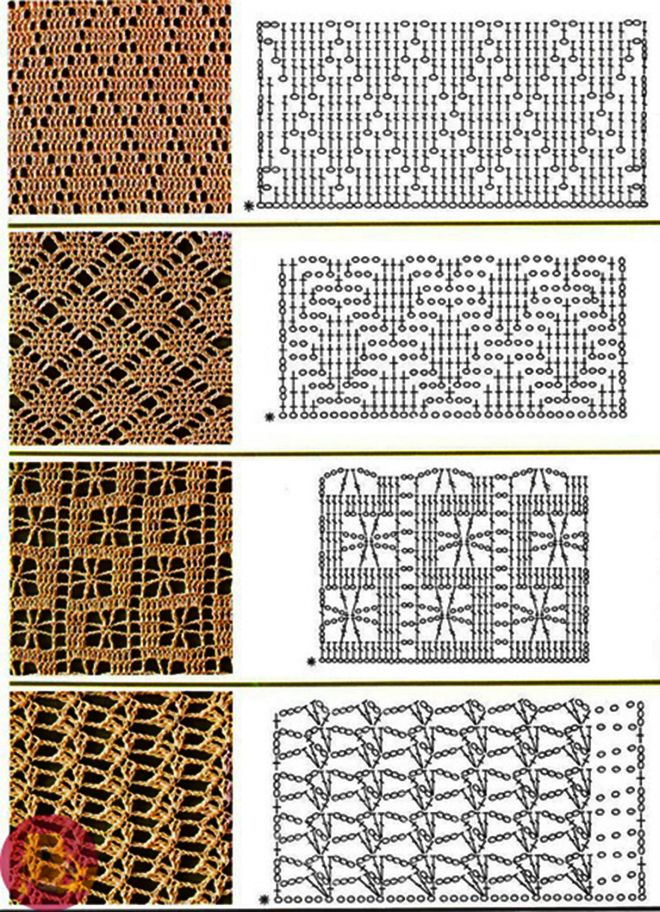 ![Узоры крючком со схемами]()