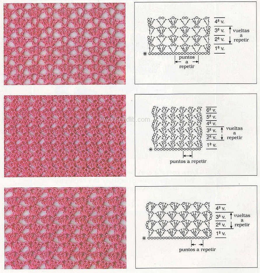 ![Мелкий Ажур крючком схемы]()