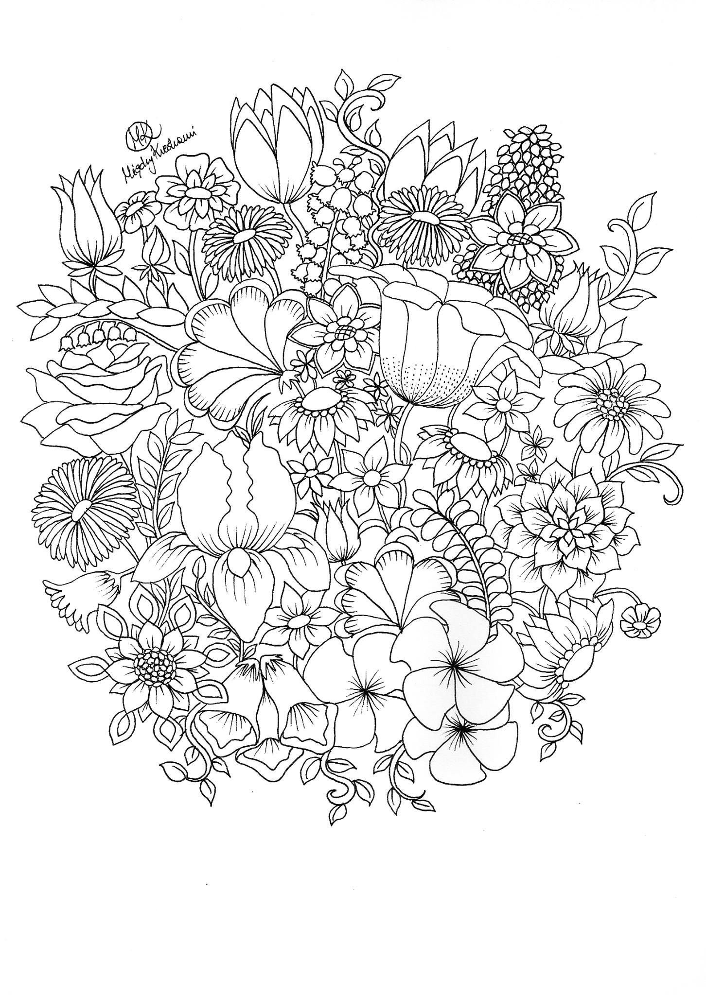 Раскраски для взрослых цветы