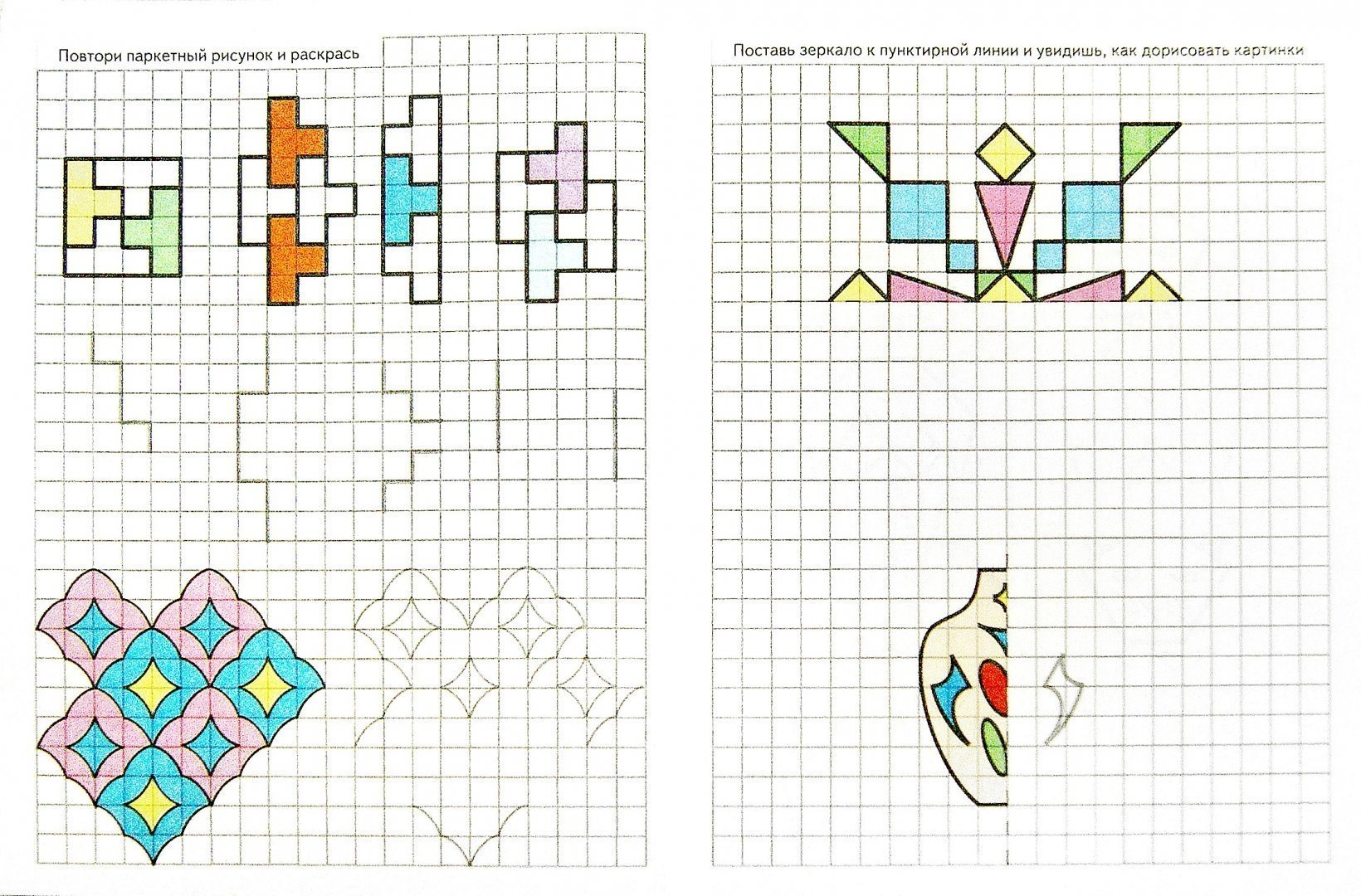 ![Геометрические рисунки по клеточкам]()