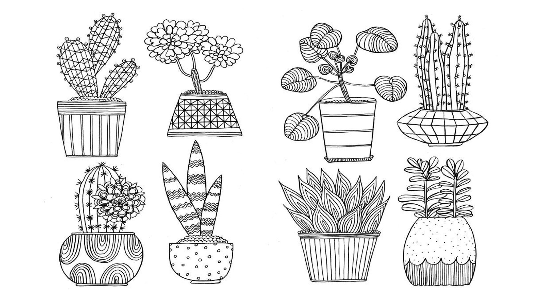 Кактусы в горшках срисовывать