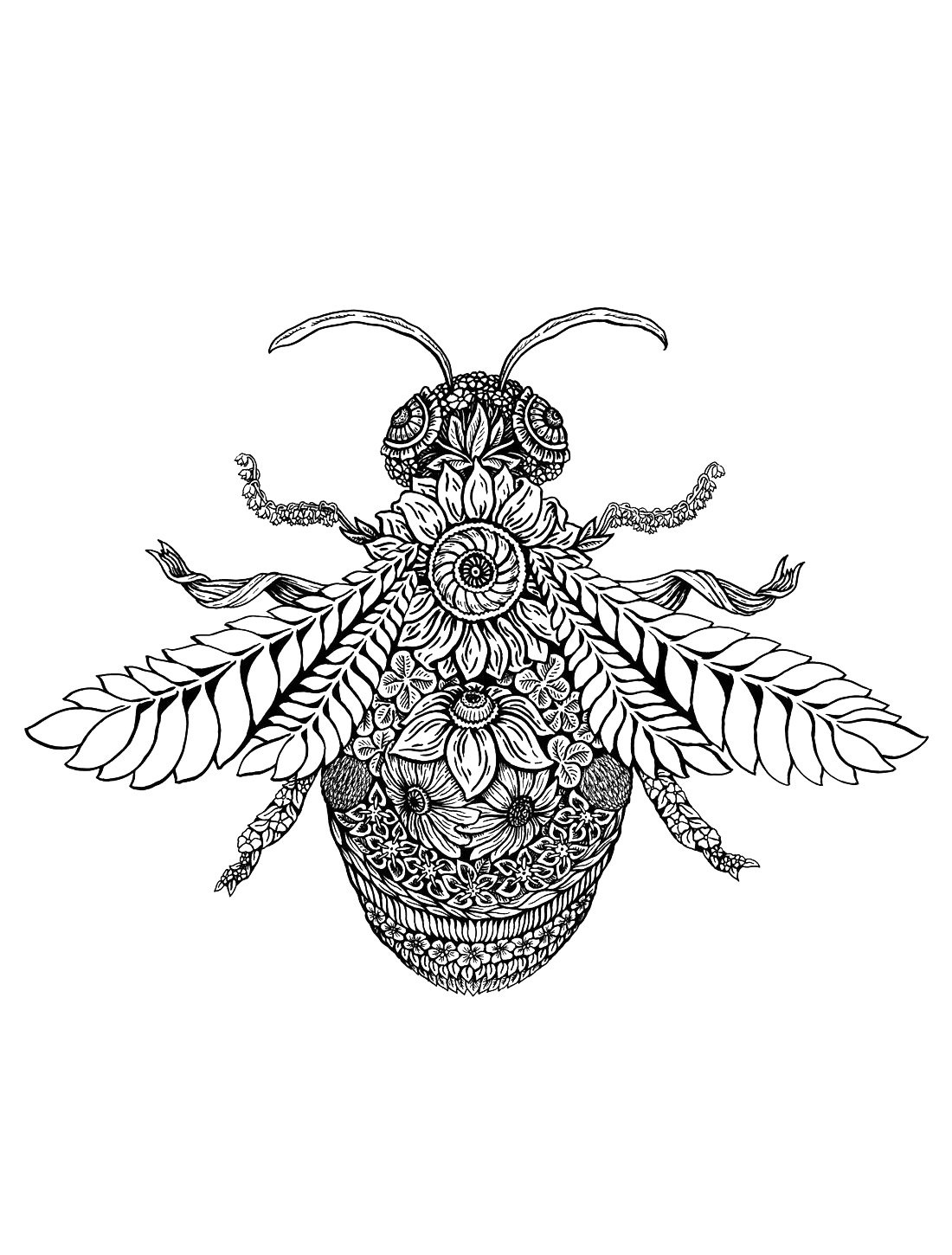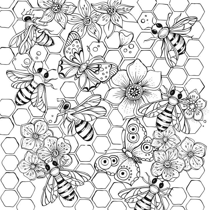 ![Раскраска антистресс пчела]()