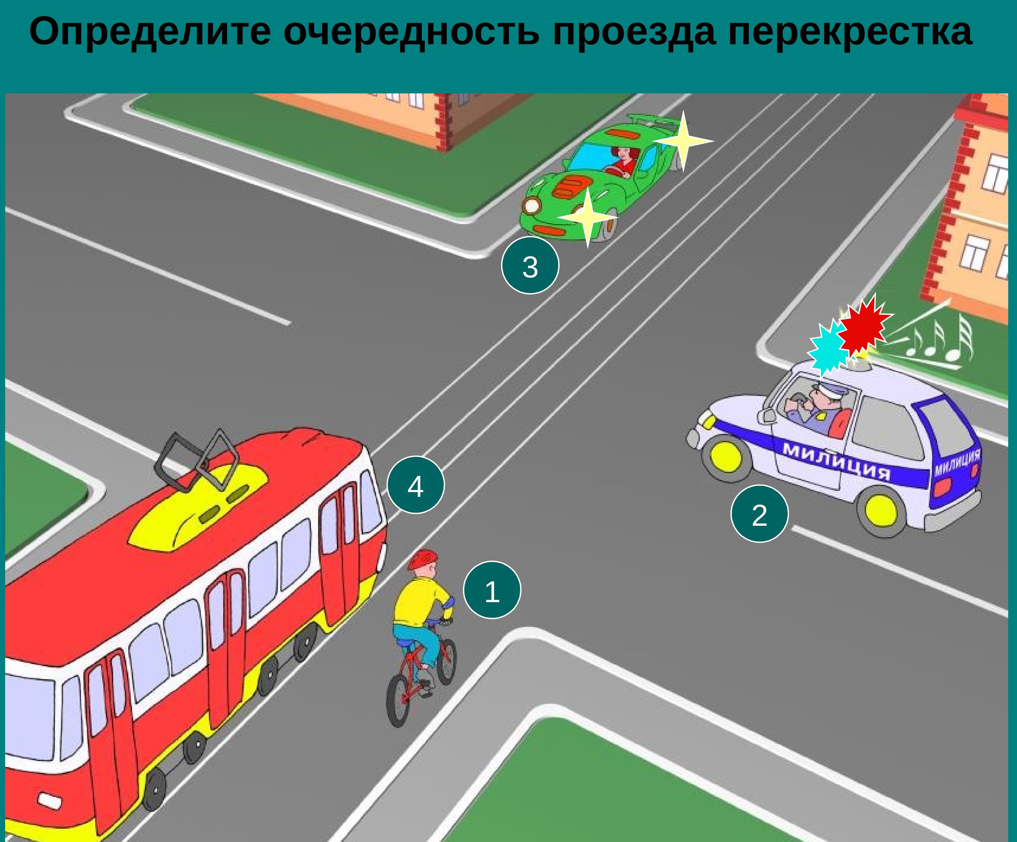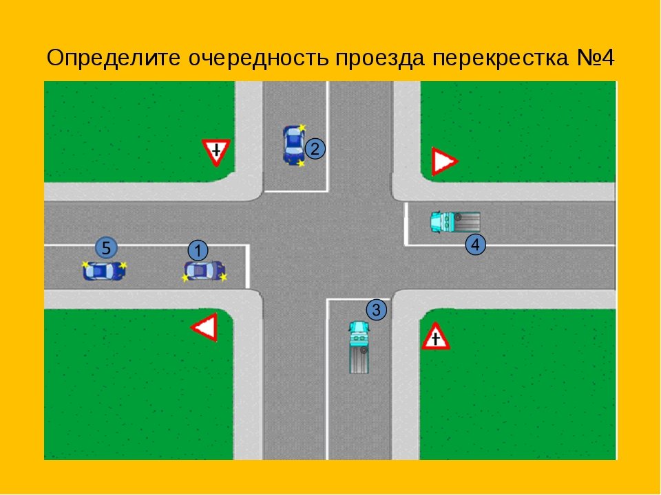 Определите очередность проезда перекрестка