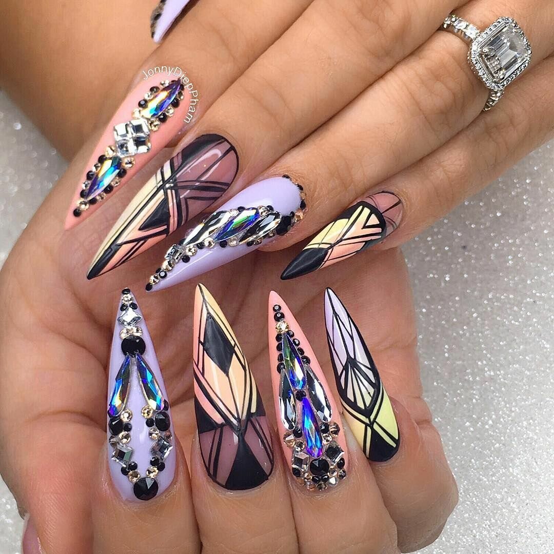 Необычный яркий маникюр на длинные ногти