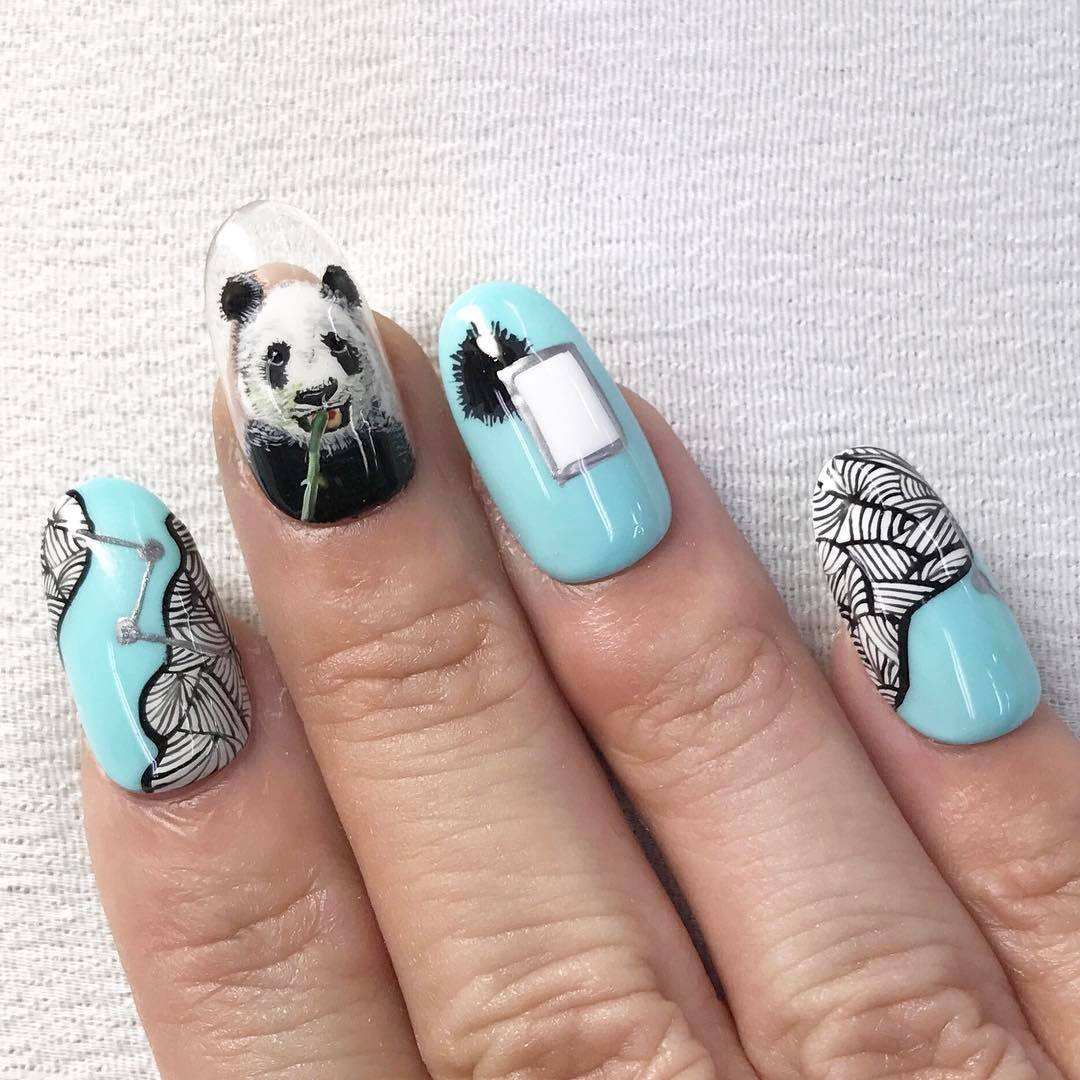 Маникюр с енотом на ногтях