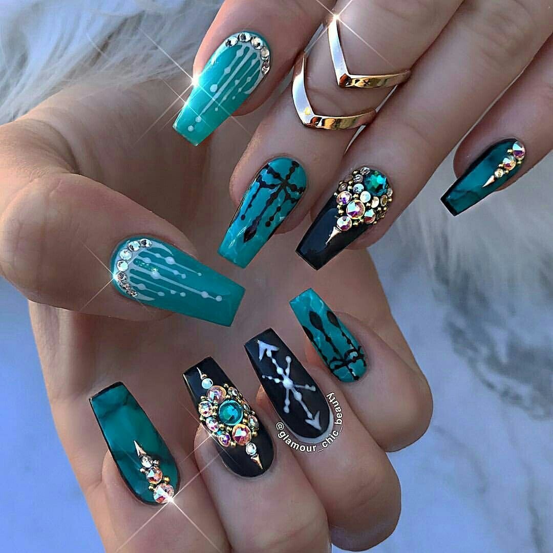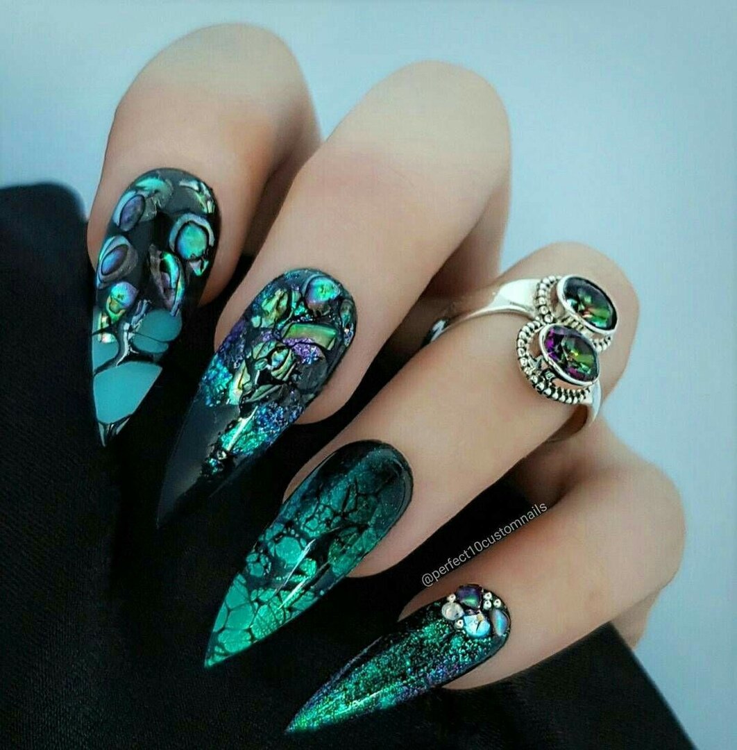 ![Изумрудный маникюр стилет]()