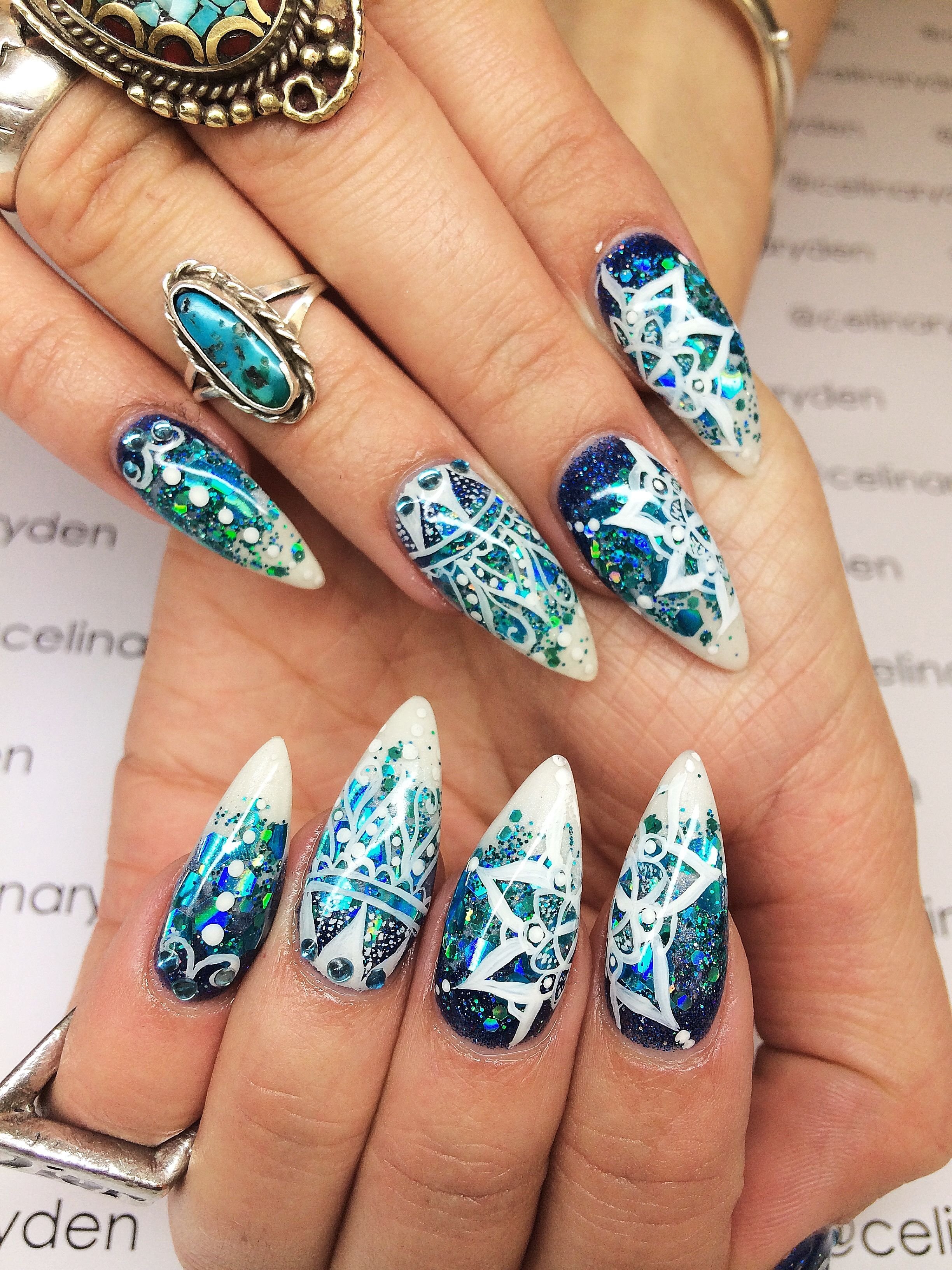 Зимний маникюр на острые ногти