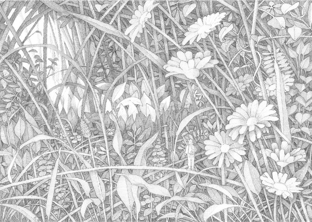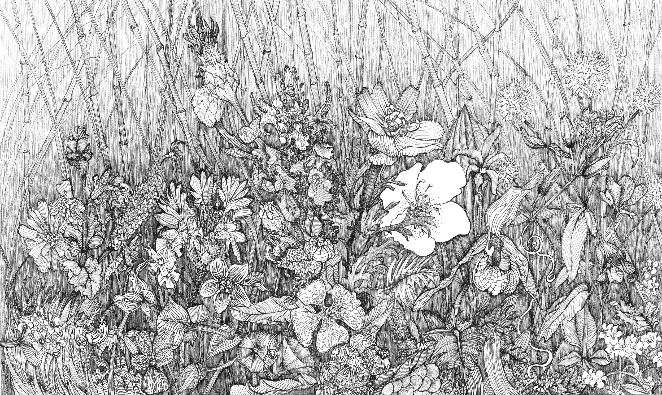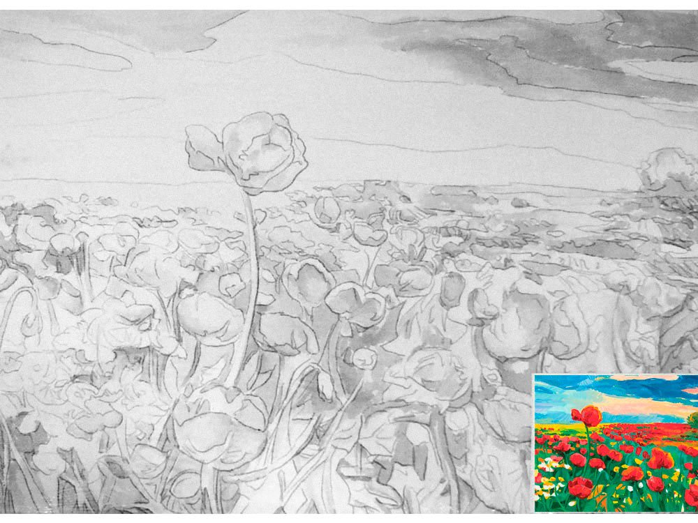 Поле цветов карандашом