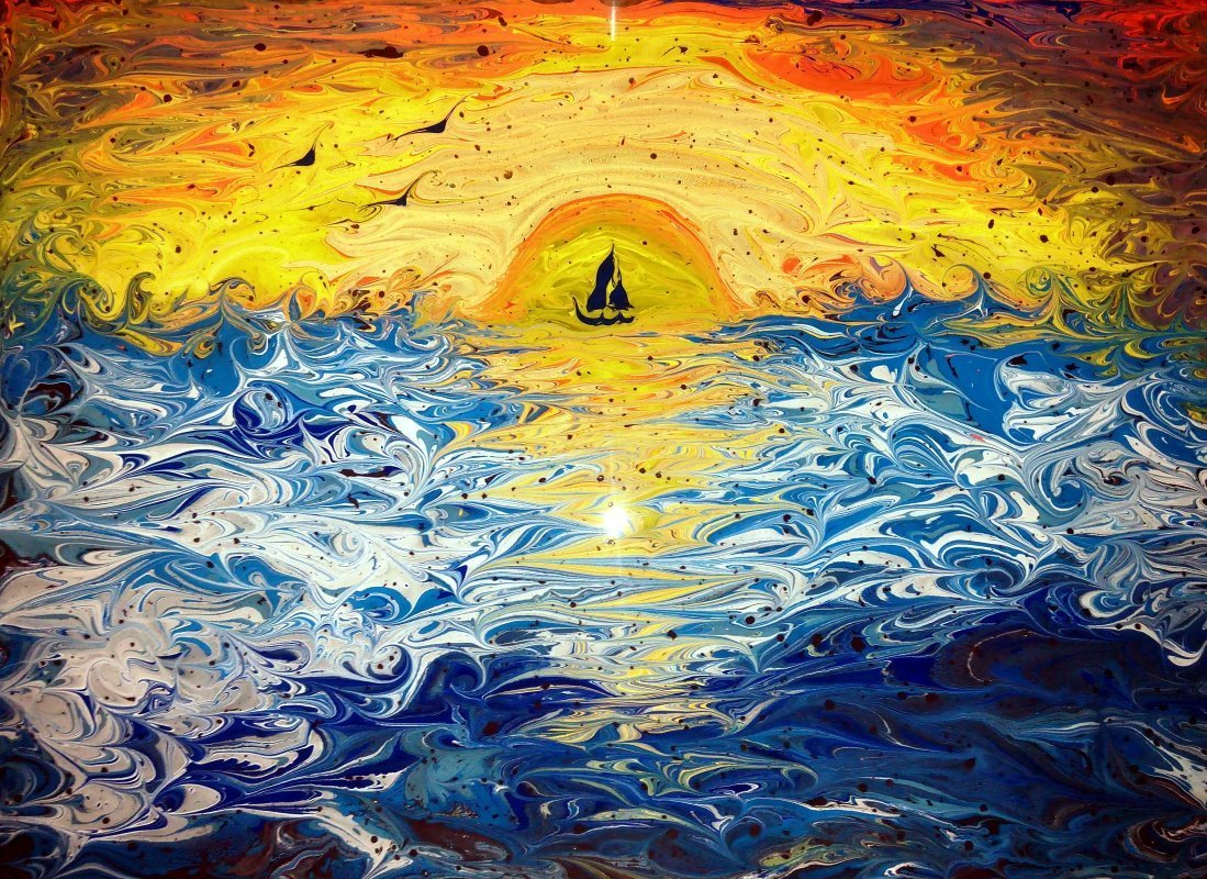 ![Техника эбру рисование на воде]()