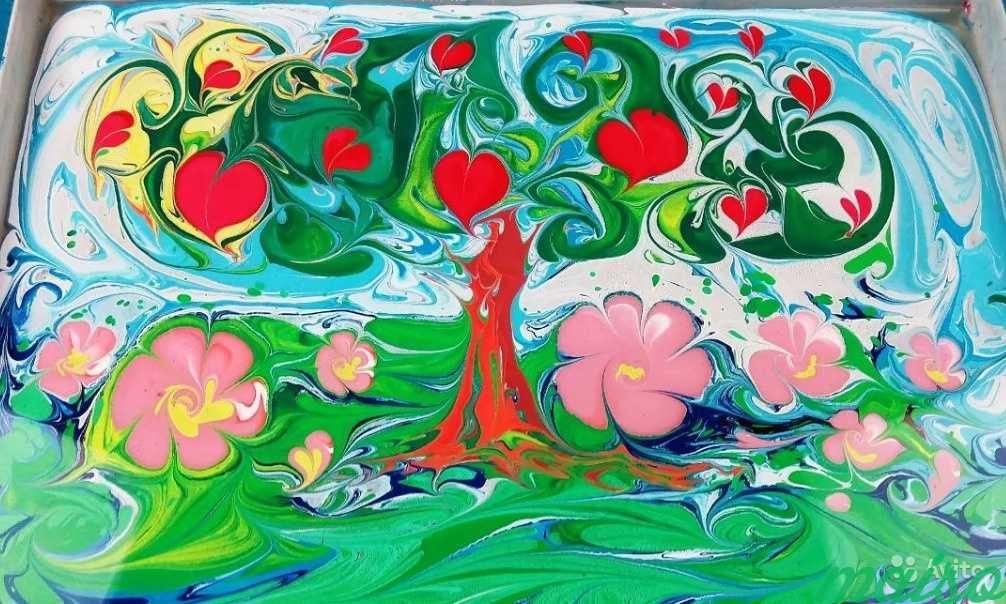 ![Эбру рисование на воде дерево]()