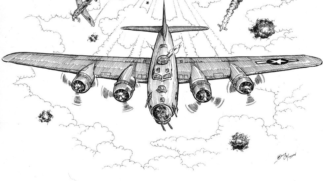 ![Военный самолет рисунок]()