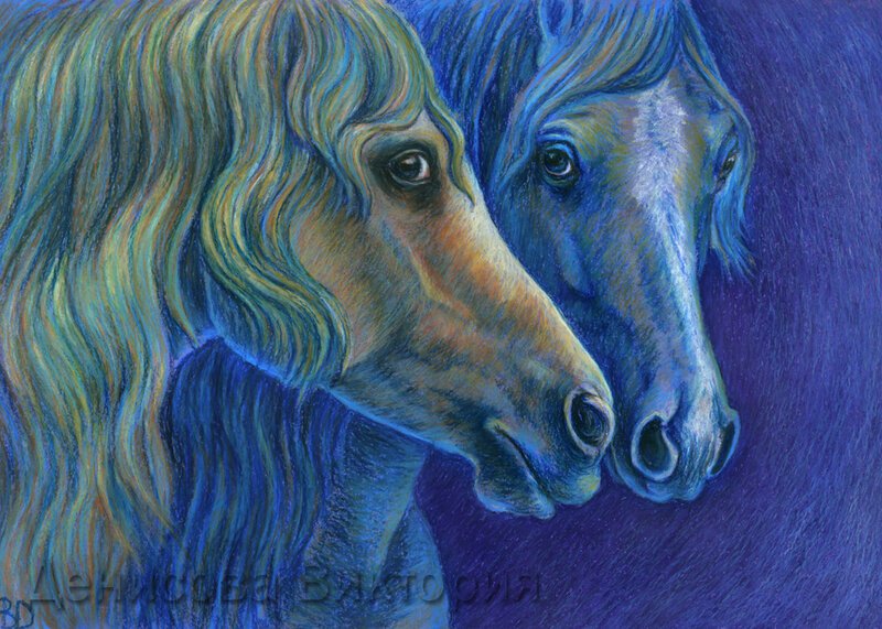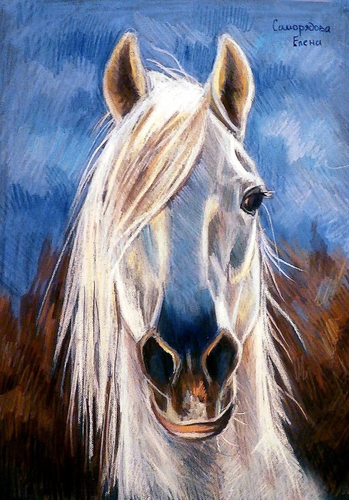 ![Лошадь масляной пастелью]()