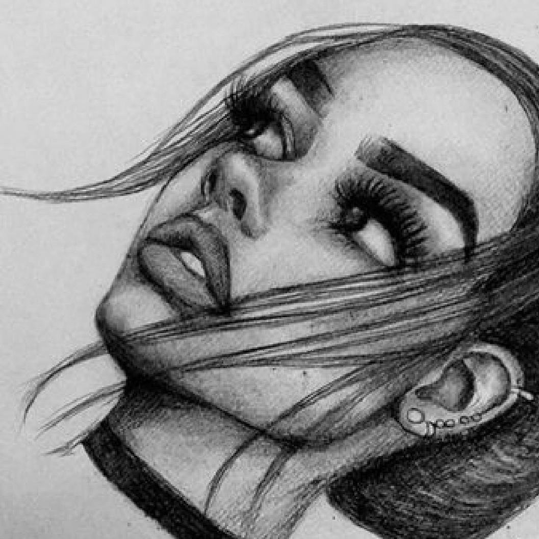 ![Девушка карандашом]()