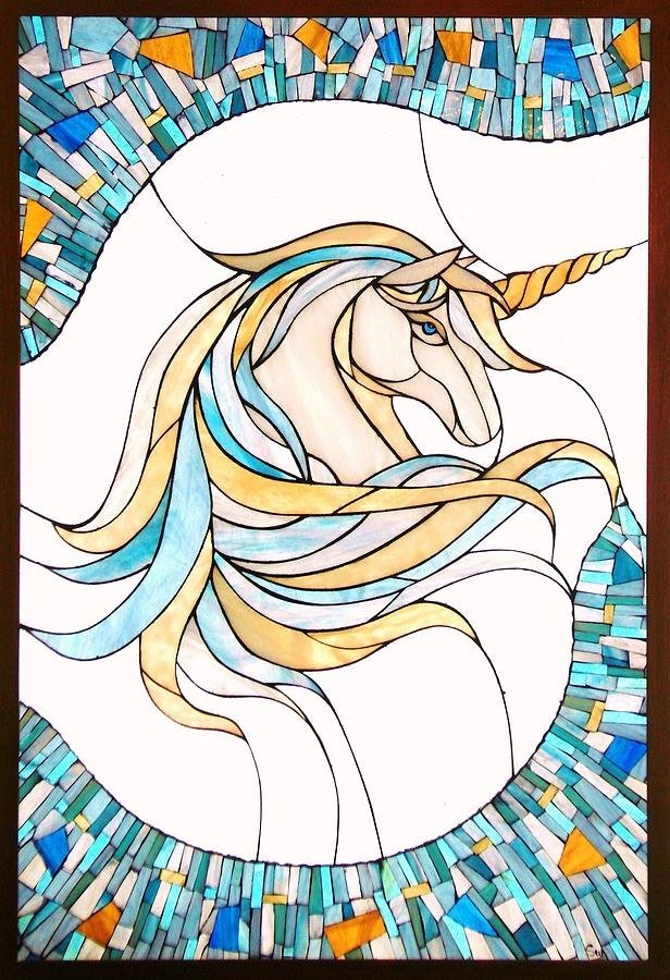![Трафареты для витража Единороги]()