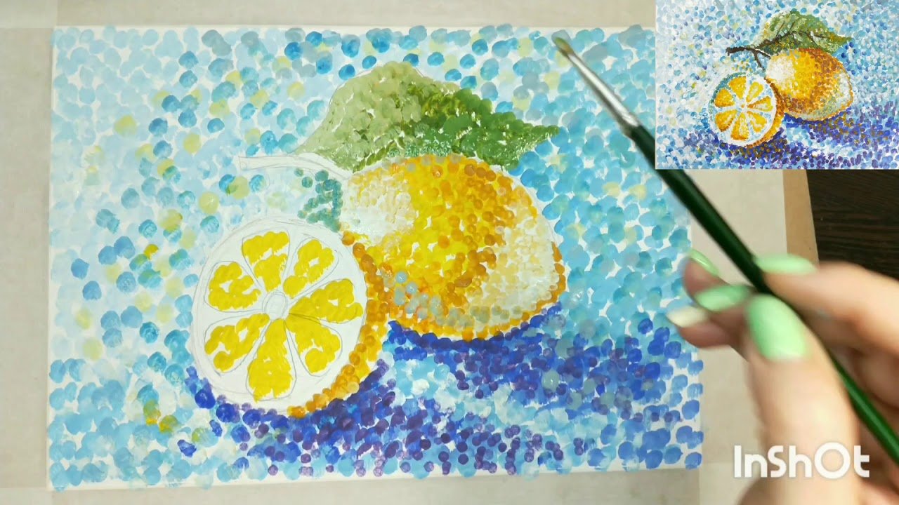 ![Пуантилизм техника рисования для детей пейзаж]()