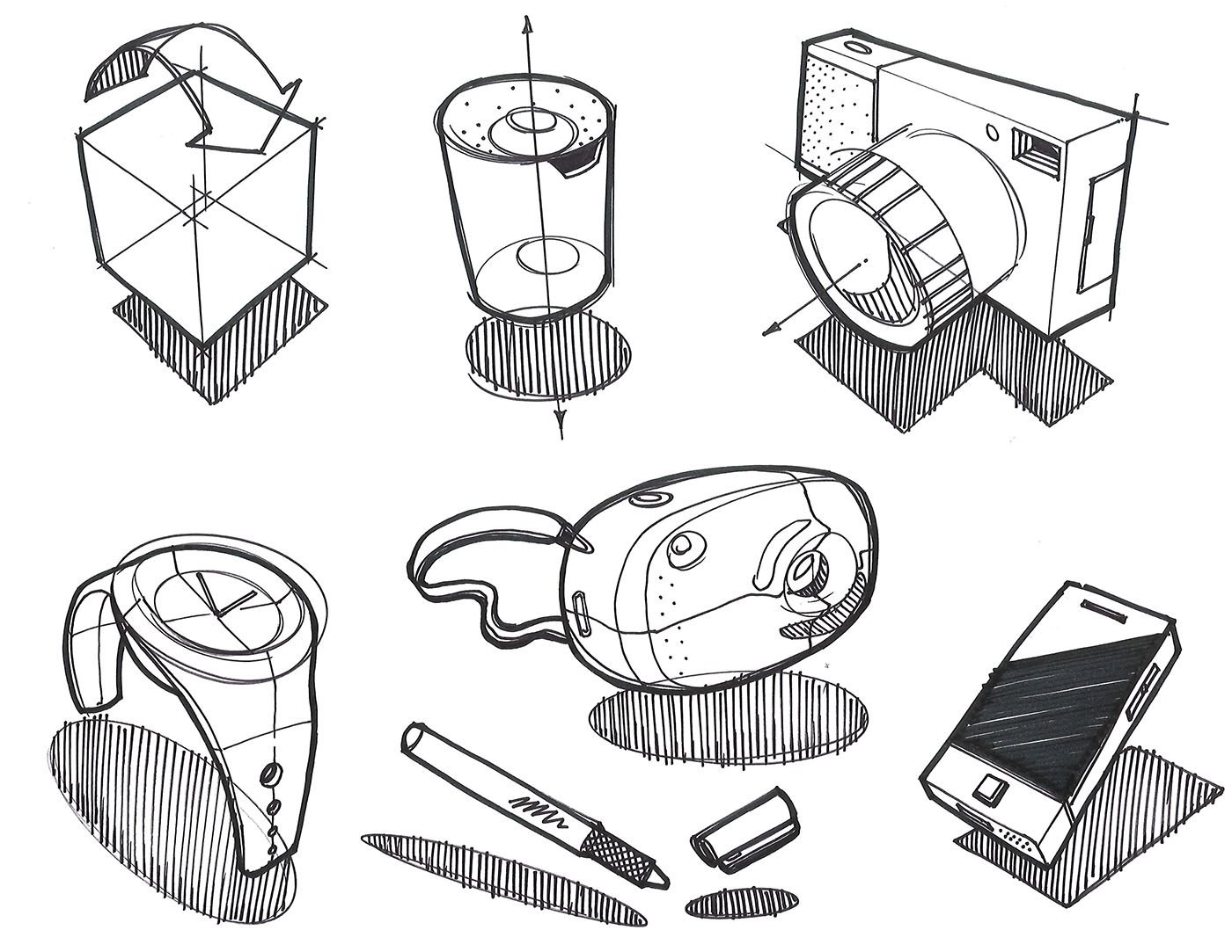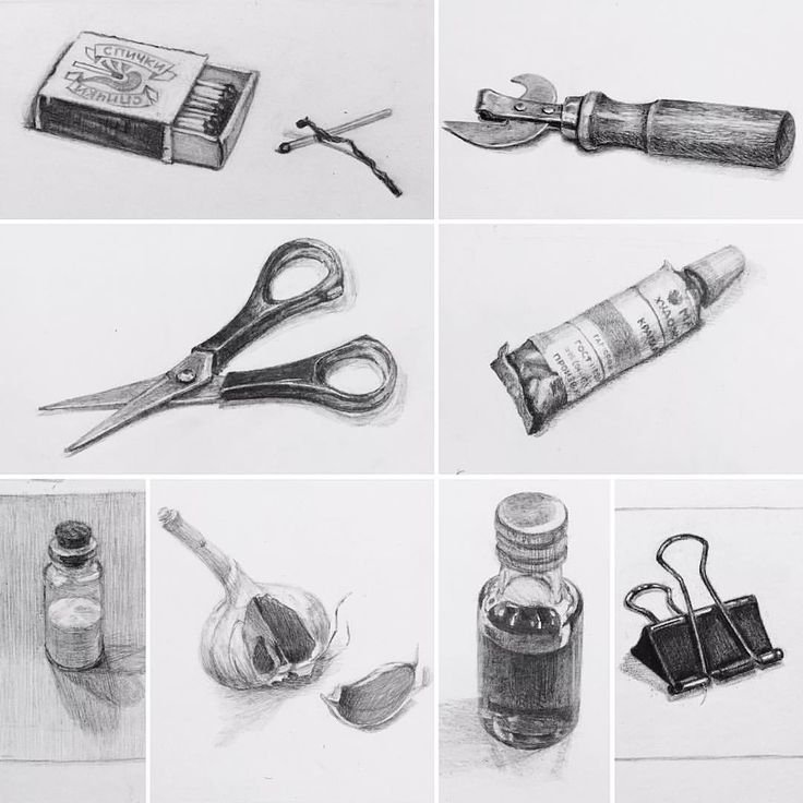 ![Скетчи предметов карандашом]()