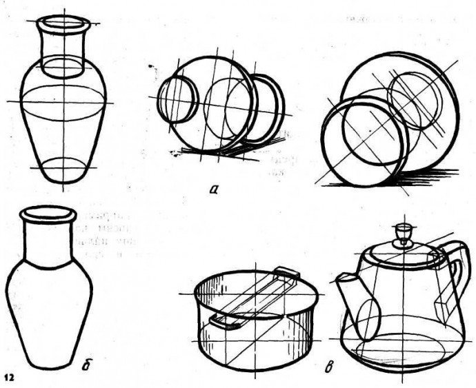 ![Наброски предметов быта конструктивно]()