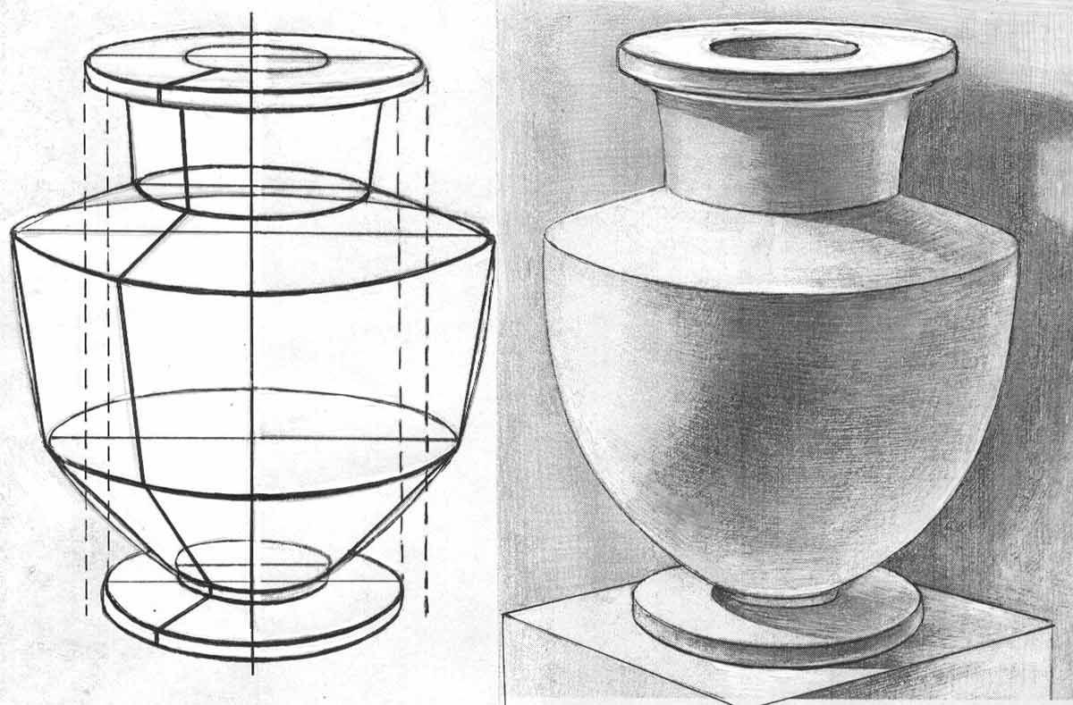 ![Рисование с натуры предметов цилиндрической формы.]()