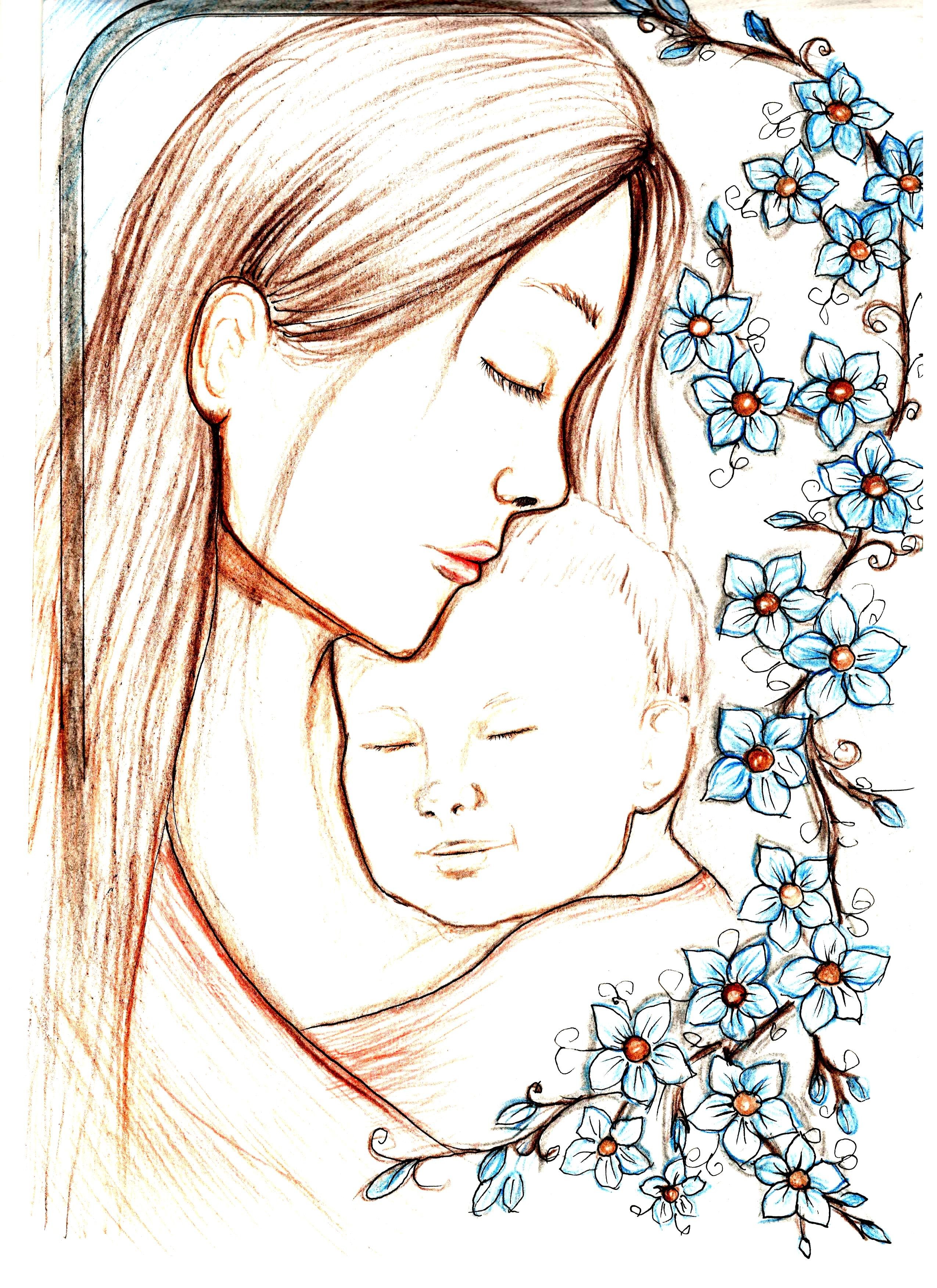 ![Рисунки ко Дню матери для срисовки лёгкие]()