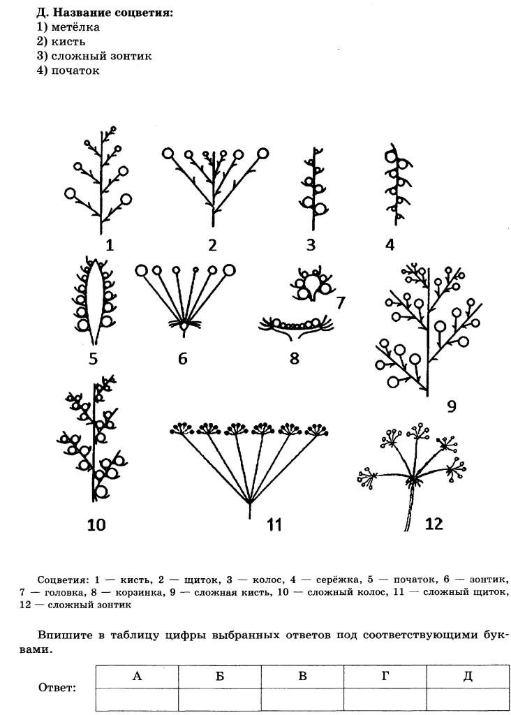 ![Схемы соцветий названия растений]()