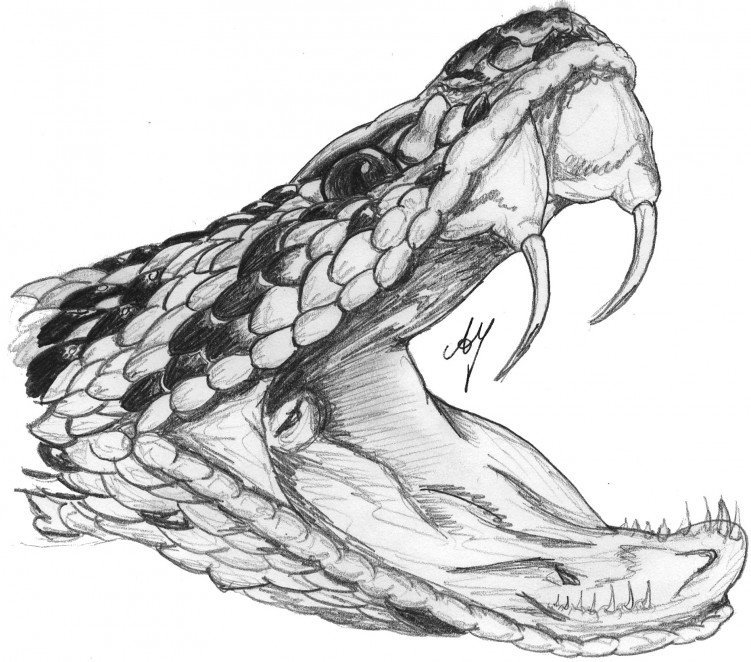 ![Змея с открытой пастью эскиз]()