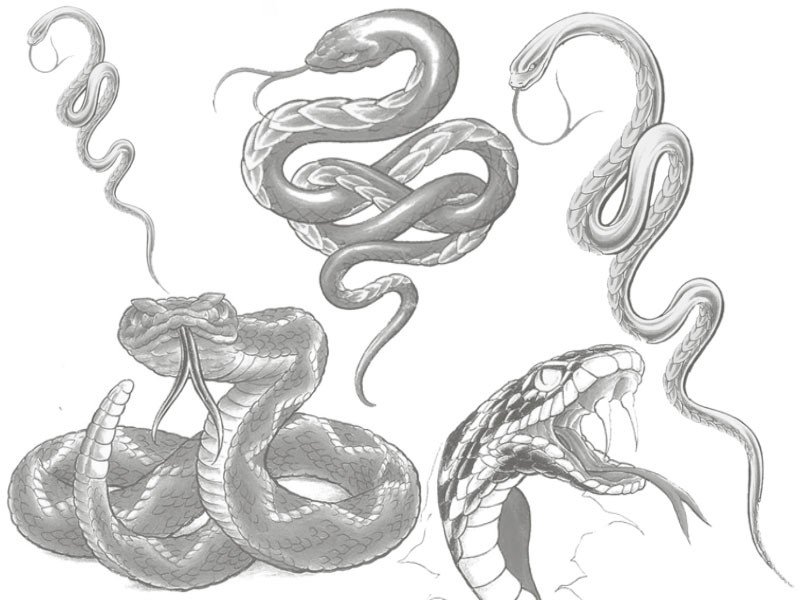 ![Реалистичный эскиз змеи]()