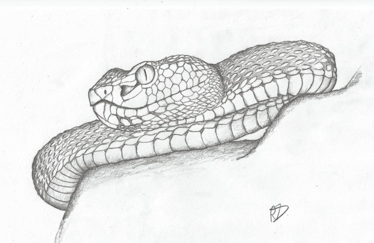 Змея набросок карандашом
