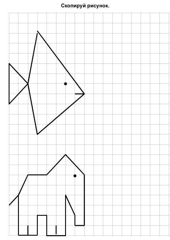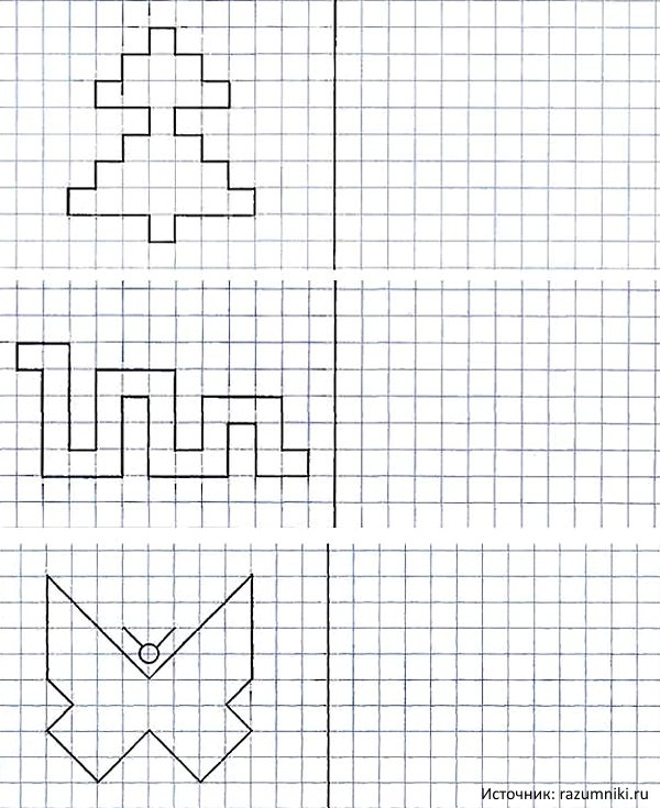 ![Зеркальное рисование по клеточкам для дошкольников]()