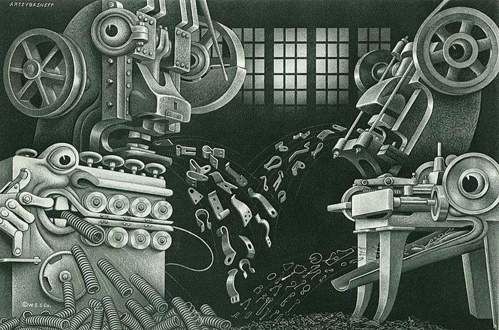 ![Сложный нарисованный механизм]()