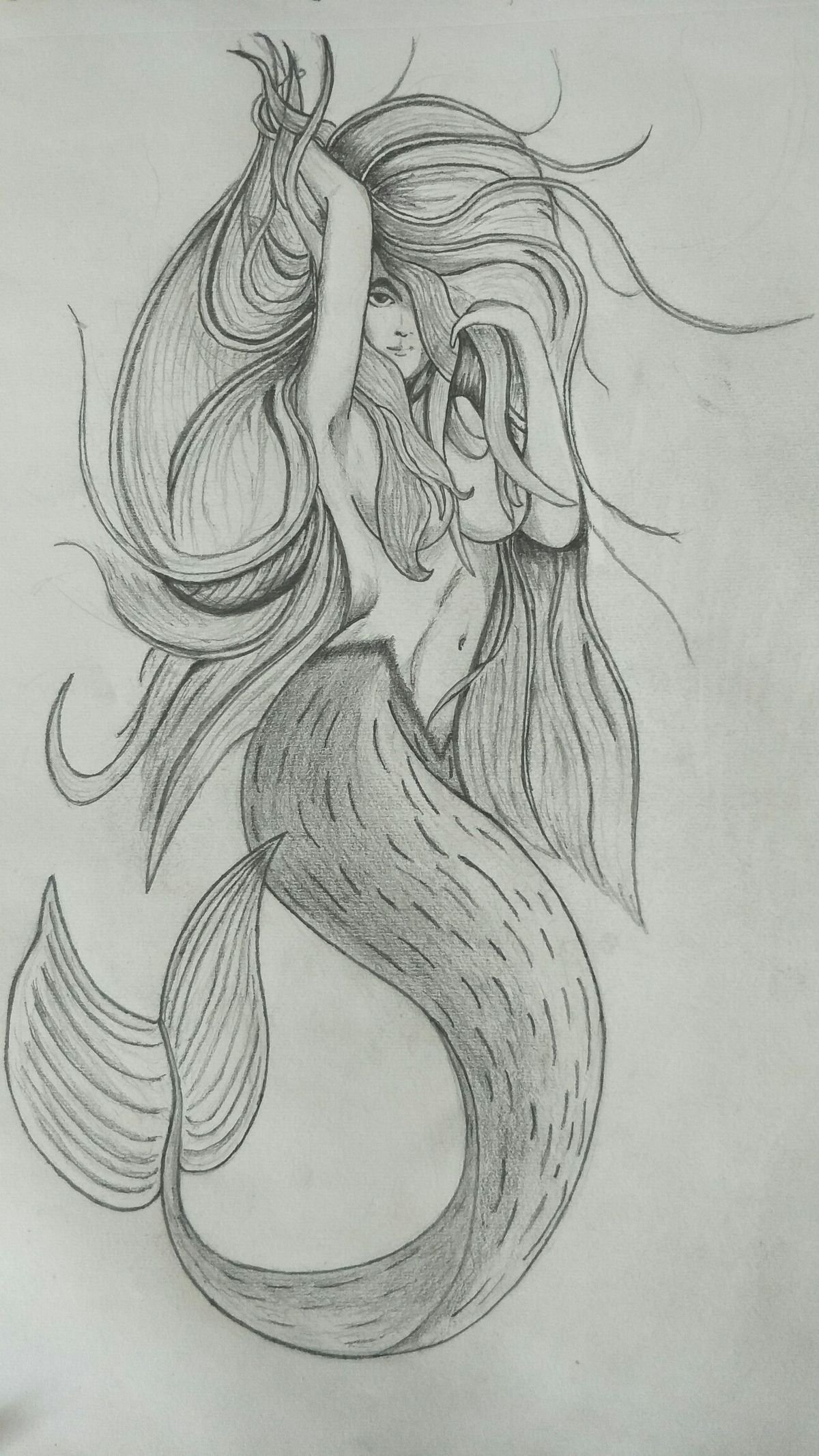 ![Рисунки карандашом русалки очень красивые и сложные]()