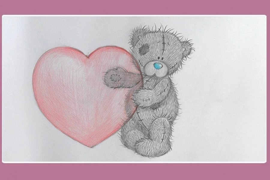 ![Мишка с сердцем рисунок карандашом]()