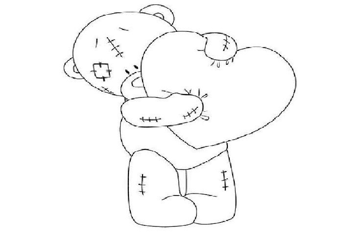 Мишка с сердечком рисунок для срисовки
