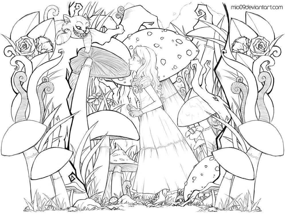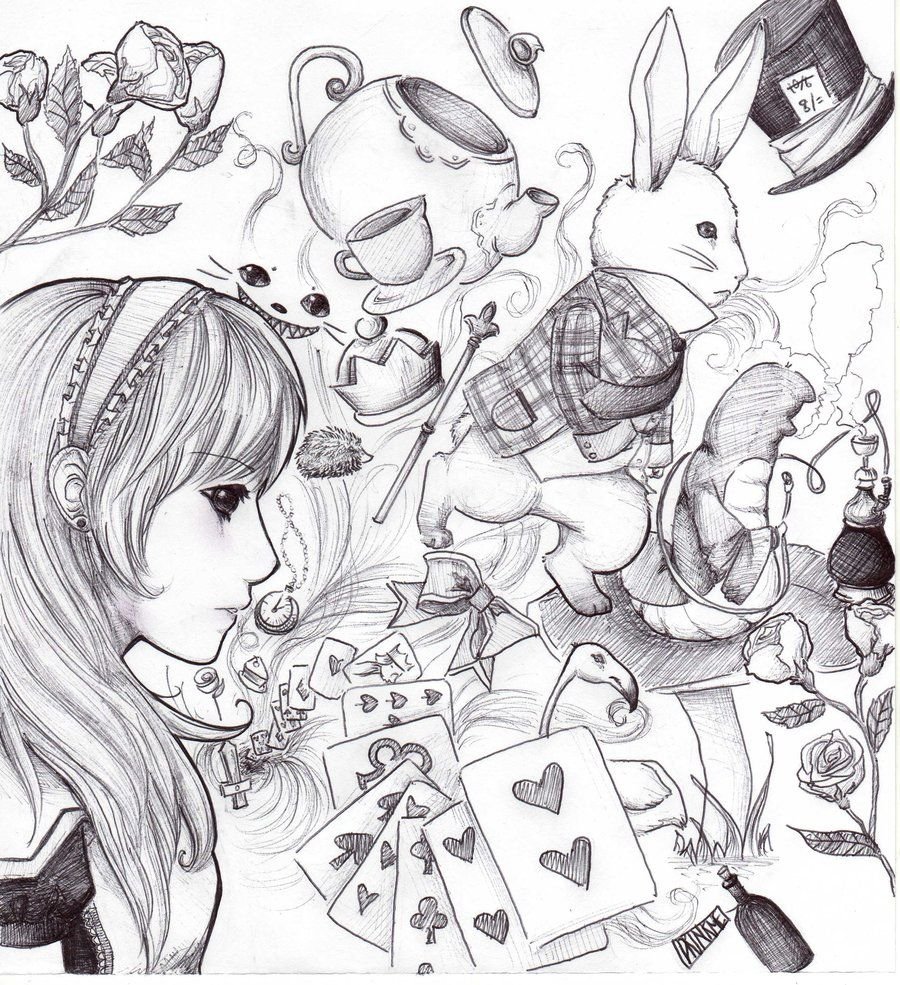 ![Алиса в стране чудес карандашом]()