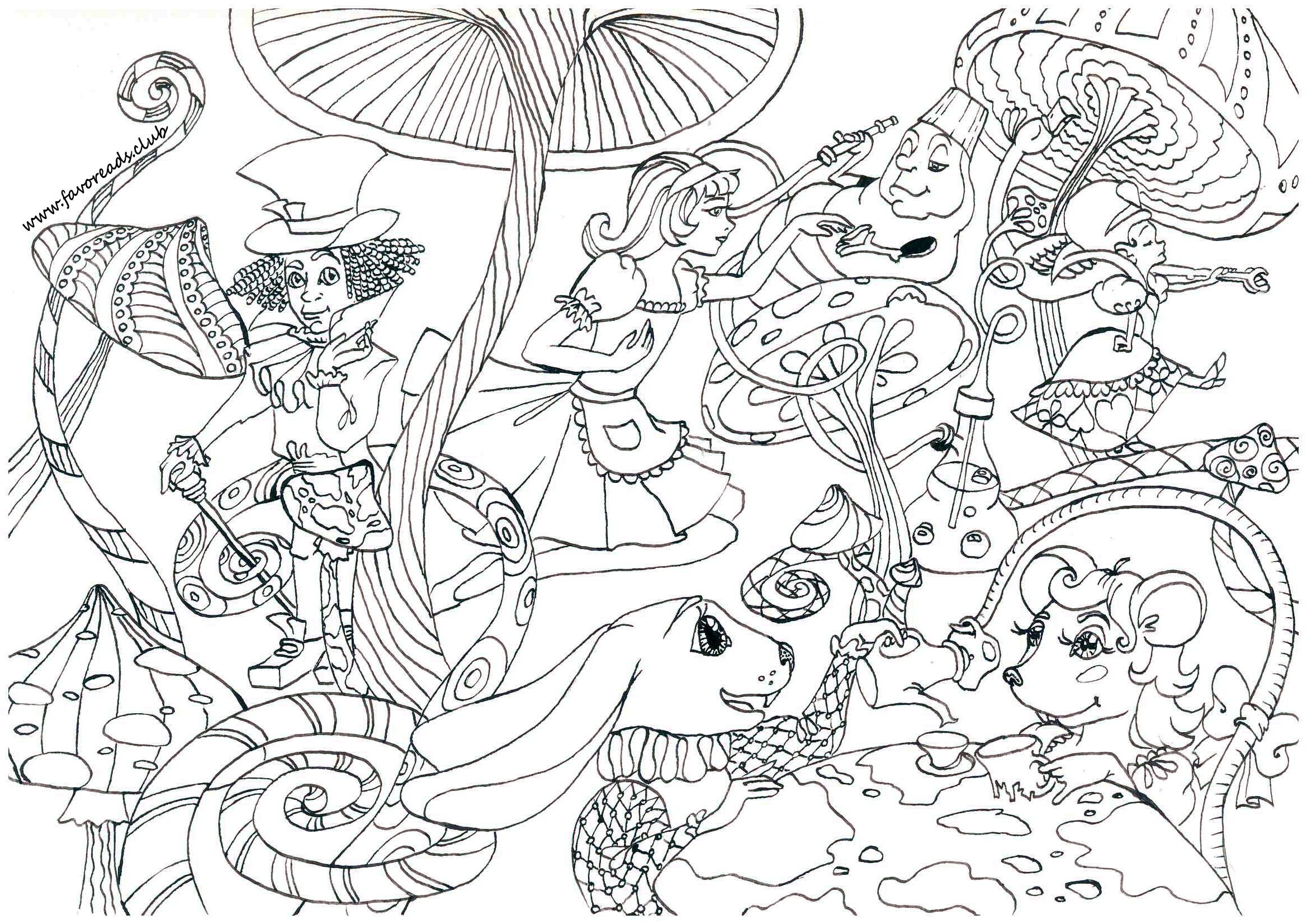 ![Раскраска антистресс Алиса в стране чудес]()
