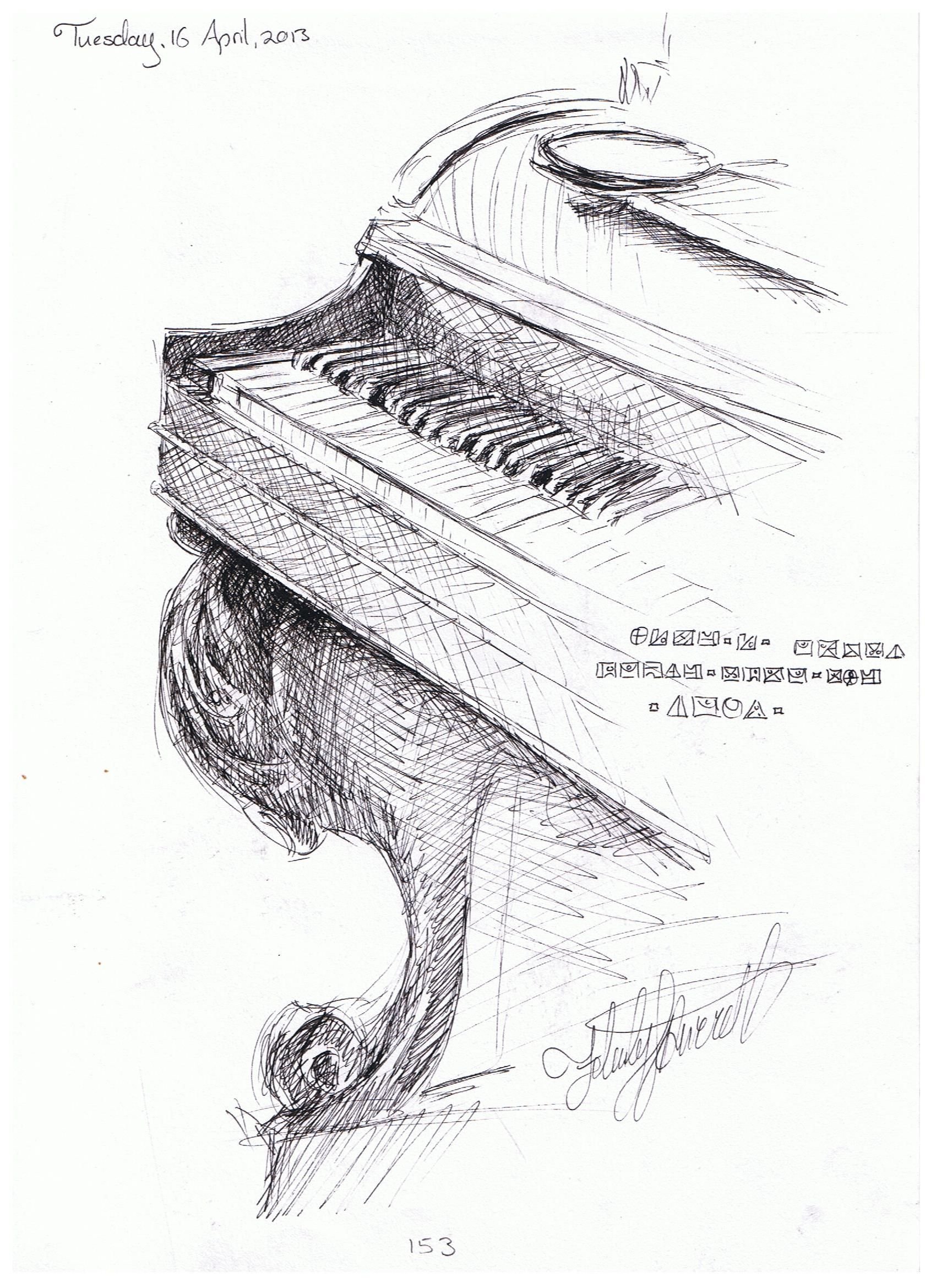 ![Нарисованное фортепиано тушью]()