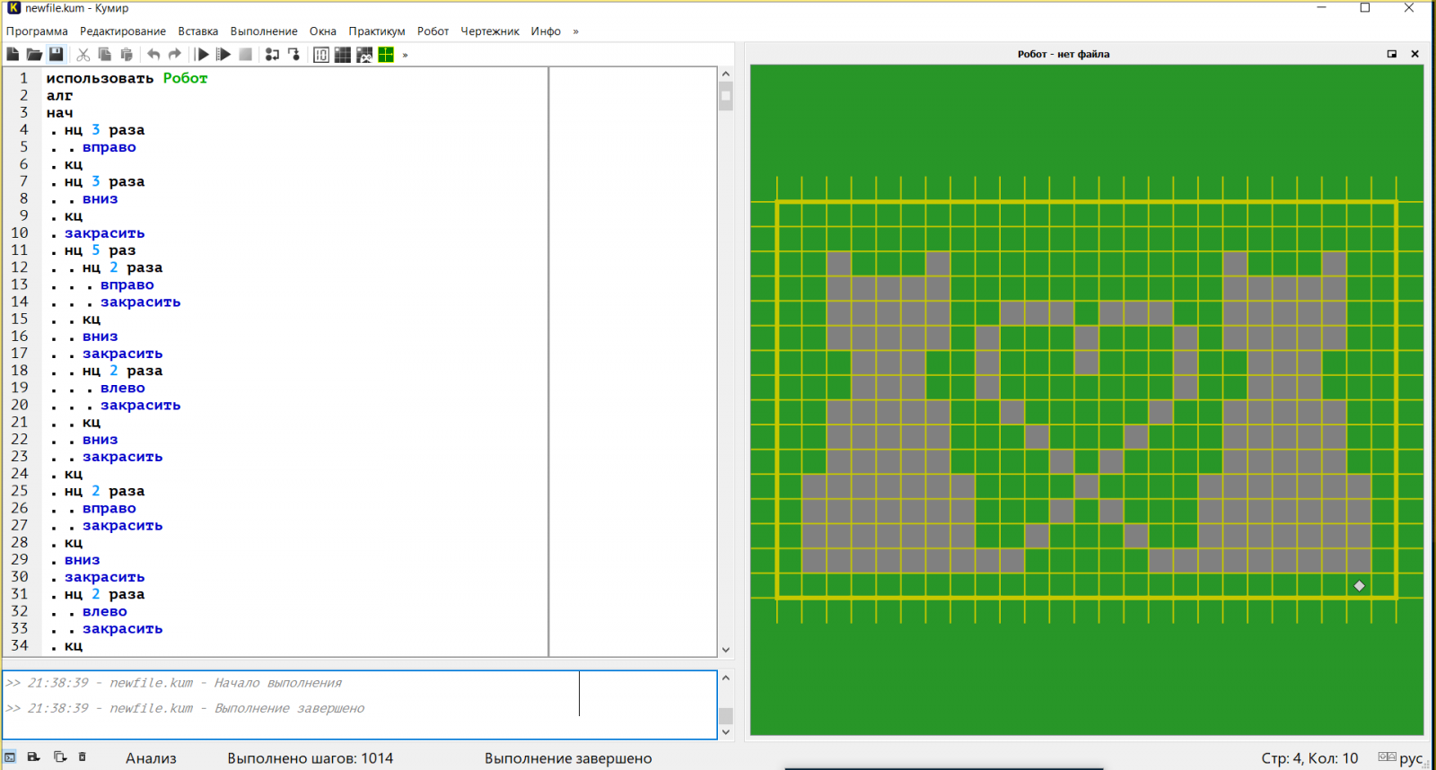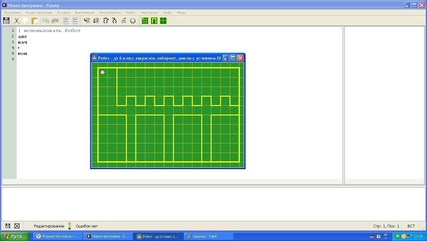 Написание программ для исполнителя робот