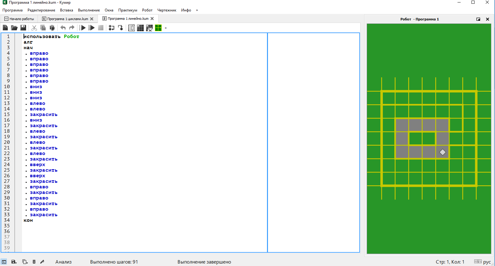 Кумир примеры программ робот