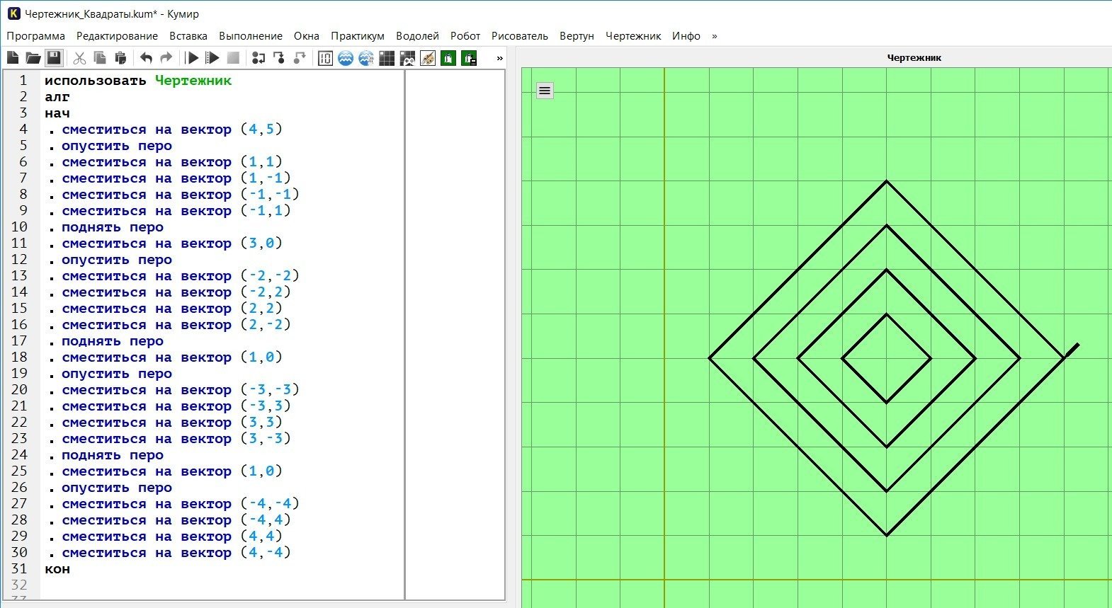 Алгоритм квадраты в чертежнике кумир