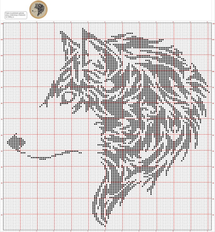 ![Монохромная вышивка Лев]()