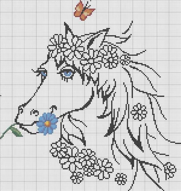 Монохромная вышивка крестом лошади