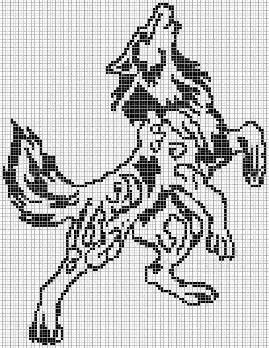![Монохромная вышивка крестом лошади]()
