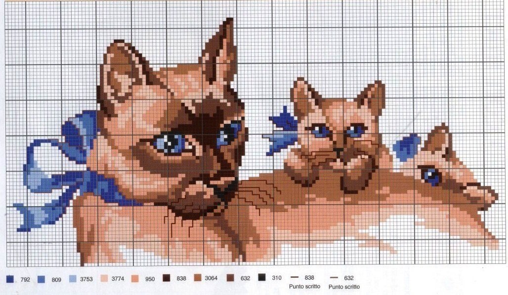 ![Схемы для вышивания котята]()