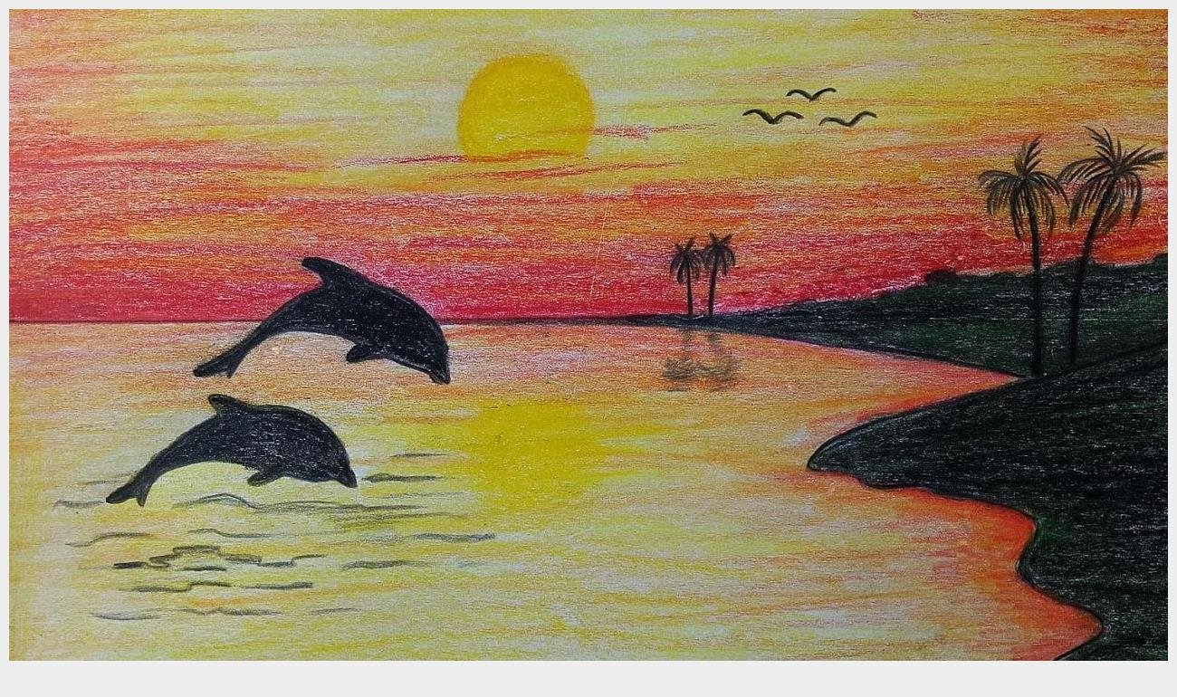![Морской пейзаж цветными карандашами]()