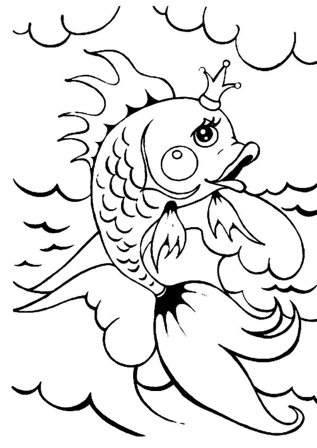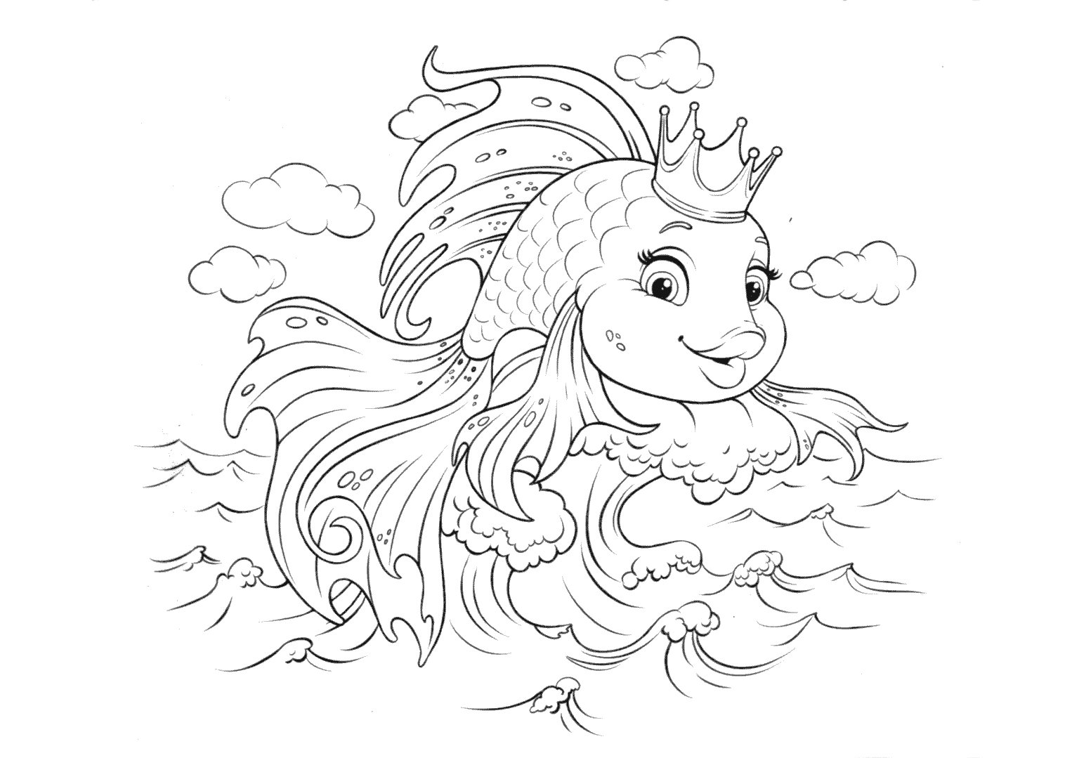 Золотая рыбка раскраска к сказке о рыбаке и рыбке