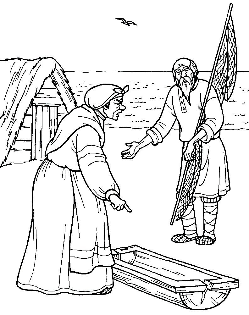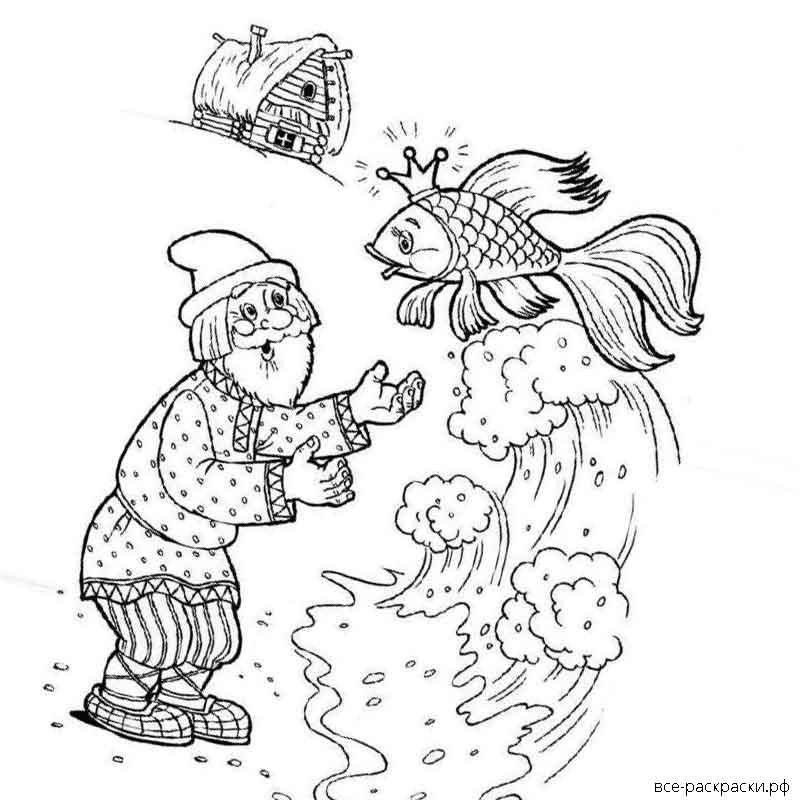 Раскраски по сказке Пушкина о рыбаке и рыбке
