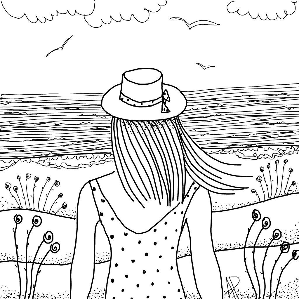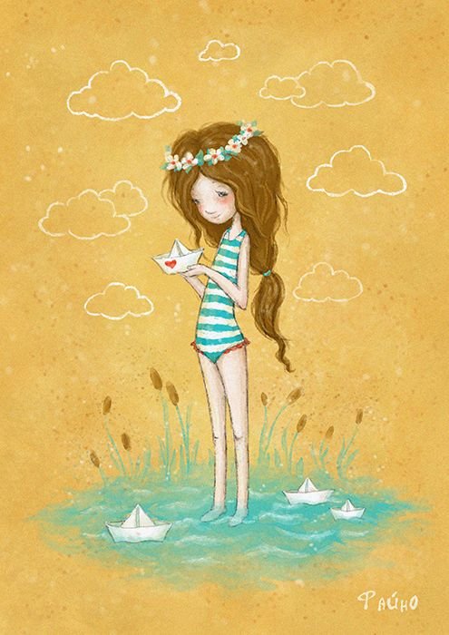 ![Летняя девушка нарисованная]()