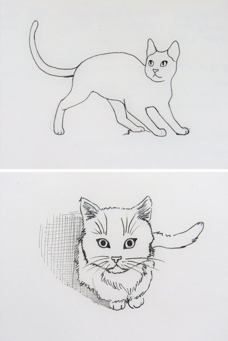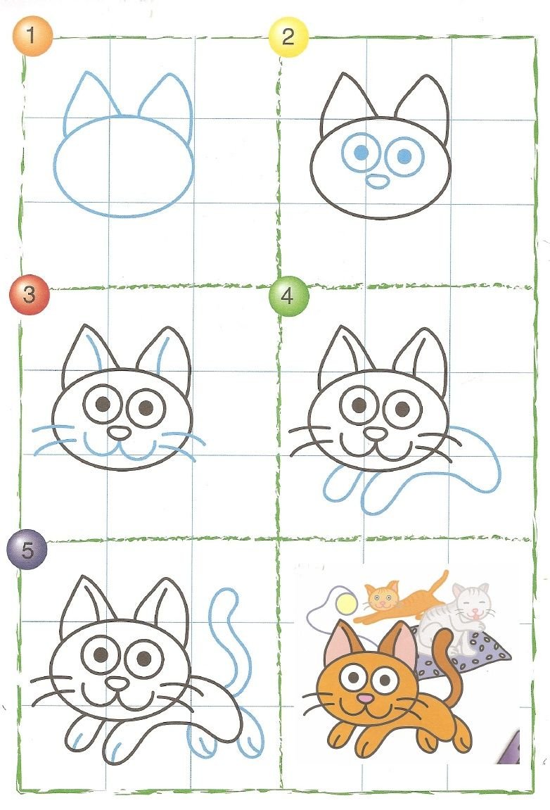 ![Рисунки для срисовки лёгкие маленькие котики]()