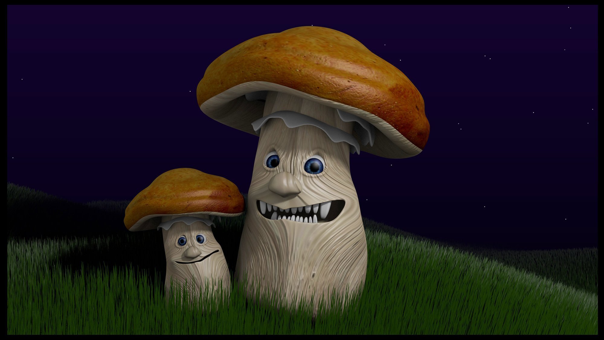 Мультяшные грибы с глазами