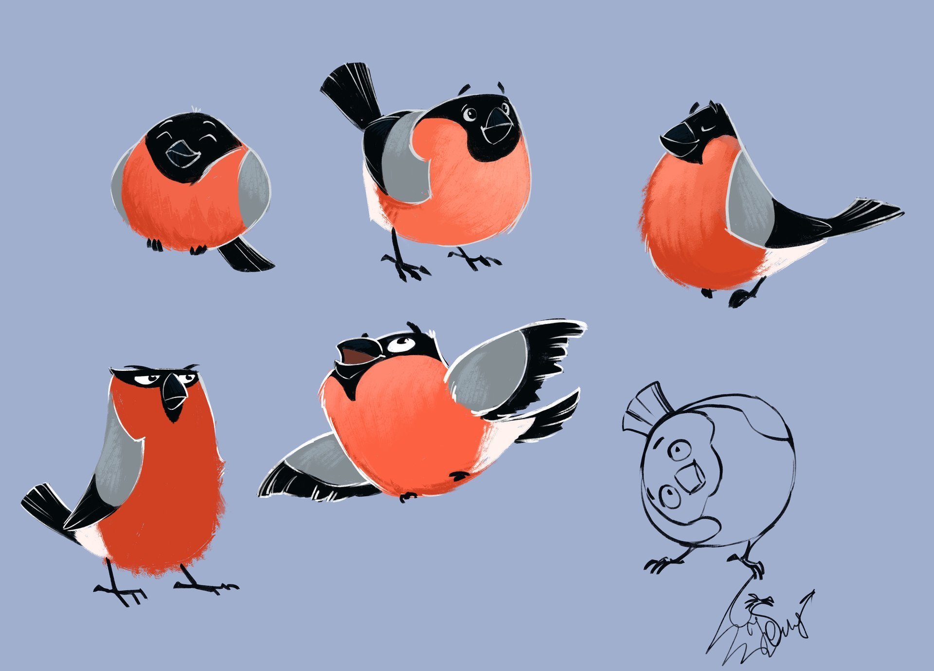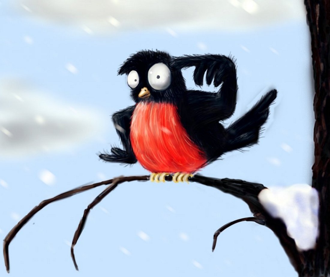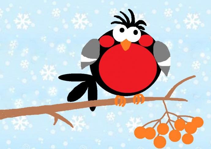Рисование смешной Снегирь