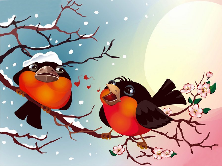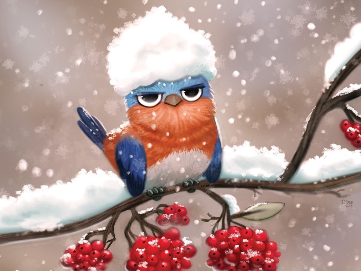 Мультяшные птицы зимой
